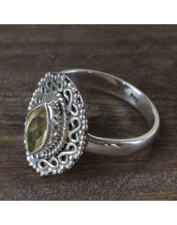 -Bague en argent 925 composée d'une Citrine taille facettée navette et finement décoré de fils d'argent.