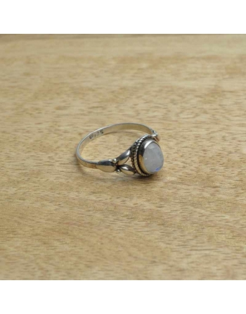-Bague en argent 925 avec une pierre de Lune ovale en taille cabochon et finement décorée.